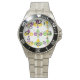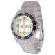 Este reloj masculino tiene un diseño del Mardi Gras de fleur de lis alineado al otro lado del diseño con diferentes diseños.