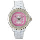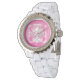 Añade un toque de elegancia y simbolismo a tu muñeca con este reloj de mujeres, con una mariposa rosa y plateada entrelazada con un signo infinito. El diseño está muy bien decorado con una cara blanca de esmalte, rodeada de rinocerontes brillantes. Este reloj combina estilo y significado, perfecto para aquellos que valoran tanto la moda como el significado en sus accesorios.