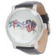 Este hermoso reloj de cuero negro vintage masculino con las palabras, me encanta SALSA, y algunos instrumentos usan para hacer fiestas, CONGA'S y MARACAS.