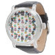 Este reloj masculino tiene un diseño moderno de mediados de siglo de semicírculos apilados en tres colores retro en un campo de blanco. ¿Quieres el mismo diseño con colores diferentes? Mándame un mensaje.