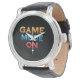 El diseño presenta la frase "Modo de juego activado" en una letra negrita, sans-serif, representada en una vibrante paleta de colores elegantes. Las palabras están dispuestas en una composición dinámica y diagonal, creando un sentido de energía y emoción.