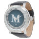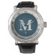 Un monograma clásico sobre un fondo azul profundo con números romanos.
