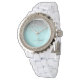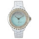Reloj De Pulsera Monograma de brillo plateado y azul teal