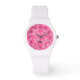 Personalice este atrevido reloj con motivos de flor rosa para la chica que ama sus tonos rosas. Simplemente edite el texto con formato de monograma de nombre en el sencillo editor de texto de Zazzle. Su elección de muchos estilos y colores de banda de relojería.