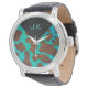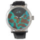 Reloj De Pulsera Monograma de impresión marrón y Verde azulada