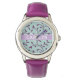 Reloj De Pulsera Monograma de patrón floral turquesa pastel