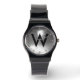 RELOJ DE PULSERA MONOGRAMA DE PIEDRA BLANCA NEGRA IMPRESA