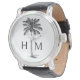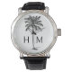 Reloj De Pulsera Monograma del árbol de palmetto negro y blanco