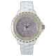 Un hermoso diseño de relojes femeninos con una elegante representación de su nombre y monograma con serios clásicos y un tipo de letra de escritura caligráfica en un aspecto equilibrado y simétrico. Los tres elementos se combinan con una sofisticada armonía y crean su propio logotipo personal. Se muestra aquí con un popular fondo violeta polvoriento con elementos monográficos en blanco y gris.
