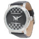 Reloj de cuero negro monogramado personalizado de acero inoxidable negro con control masculino. Masculino negro y gris personalizado monogramado Black Leather Watch para que usted pueda personalizar - diseñado en colores negros y grises con un impresionante marco plateado, este Watch es moderno y elegante, y es fácil de personalizar. - Clásico tablero de ajedrez monogramado, o, ¡dáselo a un amigo!