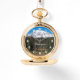 Clásico y elegante reloj de bolsillo con números blancos que presenta una pintoresca imagen paisajística del nevado Monte Rainier, la montaña más alta del estado de Washington. Seleccione entre varios estilos de relojes.