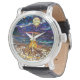 Reloj De Pulsera Moonlit Campfire Serenity Stained Glass Wall