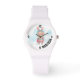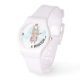 El ilustracion acuático de Miss Conejo de Pascua aparece en este reloj con una correa blanca de silicona que nunca saldrá de moda. Personalice fácilmente el uso de la plantilla proporcionada. Elige entre 15 estilos, cuatro de los cuales tienen un tamaño excesivo. La impresión en estos relojes es excelente.