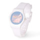 Para los amantes de los barcos, el arte de ZoeSPEAK en este reloj es un ilustracion original inspirado en los colores del año Pantone 2016 - Rosa de cuarzo y serenidad, con el viento llenando una vela rosa ondulante, olas de azul y la puesta de sol (o levantándose) con un resplandor rosa en el cielo azul claro y en el agua.