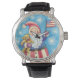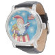 Reloj De Pulsera Navidades cortos, Papá Noel Patriótico con bandera