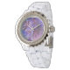 Unas hermosas libélulas rosas y tibias se volcaron sobre un fondo turbio morado.