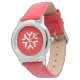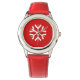 Se muestra un reloj de niños con cara roja y correa roja con una imagen de copo de nieve de vacaciones. Personalizar este reloj o compra como está.