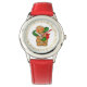 El reloj de pulsera para niños se muestra en acero inoxidable con una impresión de pan de jengibre para Navidades de vacaciones. Correa roja. Personalizar este reloj o compra como está.