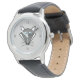 Este reloj impresionante presenta un personalizado al estilo kawaii de un tierno lobo gris de Halloween con orejas puntiagudas, ojos azules brillantes y nariz negra rodeada de whiskys. Este lobo lindo es perfecto para Halloween o para los amantes de los animales.