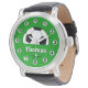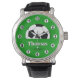 Watch: reloj elegante con balón de fútbol en un campo verde y nombre personalizado "Thomas" - fútbol, regalos de moda de fútbol, día del padre / hincha deportivo