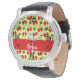 Reloj De Pulsera Nombre personalizado de cerezas rojas en amarillo