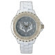 Este elegante reloj de pulsera cuenta con una silueta de ciervos blancos enmarcando su letra monográfica y su nombre completo en blanco con números blancos alrededor. El color de fondo es gris, pero se puede personalizar según tus preferencias personales.