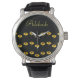 Reloj De Pulsera Nombre personalizado girasoles amarillos en negro
