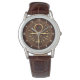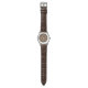 En un fondo marrón, algo ruidoso, este diseño del reloj muestra un antiguo adorno egipcio decorado con motivos circulares, uno grande y otro más pequeño, de barras doradas, unidas entre sí. Justo en medio del adorno, el antiguo símbolo egipcio de la vida, conocido como "ANKH". El borde tiene un resplandor dorado a su alrededor, al igual que los números de hora jerárquicos egipcios, iluminados y antiguos.