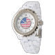 El esmalte blanco Diamante de imitación de las mujeres ve la bandera de los Estados Unidos