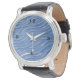 Este inusual reloj masculino presenta un patrón de agua azul. Los colores son azules. El diseño evoca el océano o el río. ¿Tal vez sea para un marinero o un pescador? Los números son grandes para facilitar la lectura. Sólo tú sabes si es correcto para ti. Busque los demás productos de esta colección. Traído por el fabricante de mosaicos de Oregón Fay Jones Day.