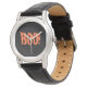 Este reloj de mujeres se muestra en acero inoxidable con una cara negra y correa de cuero negro con una impresión de Halloween Boo! Personalizar este reloj o compra como está.