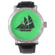 Reloj De Pulsera Ocean Glow_Black-on-Green Clipper Ship