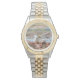 Pintura de la colección "Rocky Waves 0742" Perfecto para el uso diario, este reloj de dos tonalidades dorado y plateado puede ser personalizado. Personalice en la página del producto o haga clic en el botón "Personalizar" para obtener más opciones de diseño. Diseño de mi pintura "Olas rocosas 0742" que capta las olas que se estrellan en una costa rocosa en la bahía de Banderas en Puerto Vallarta, México. Los productos coincidentes están disponibles en esta colección.