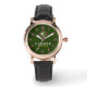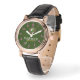 Add a touch of royal charm to your wrist with this olive green and gold personalized watch, a perfect mix of sophistication and individuality. The deep green dial features soft pink hour markers and a custom monogram crest, beautifully balanced by the rose gold bezel and white leather strap. Elegant, modern, and timeless — this watch elevates any look effortlessly.