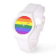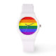 Vigilancia del Orgullo Arcoiris. La versión en seis colores de la Bandera del Orgullo Gay es popular desde 1979. El número de rayas se redujo a un número par para evitar que el color medio se ocultara cuando se colgaba verticalmente en los faroles. La banda añil fue cambiada por raya azul real.