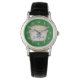 Un dibujo a lápiz de color de un montón de oro en una olla de frijol decorada con rocas de color cobalto y un trébol de cuatro hojas adornan este reloj de suerte!
