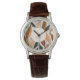 Disfrute de los colores cálidos de la temporada de otoño con este elegante reloj de pulsera. La cara de reloj está decorada con hojas de otoño en verdes de temporada, marrones y amarillos. Personaliza con un nombre para un toque individual extra.