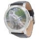 Reloj de vendaje de cuero negro de los hombres de lechón...