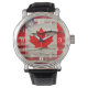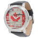 Reloj de muñeca perfecto para un canadiense-americano con una huella de la bandera estadounidense mezclada con la bandera canadiense en madera rústica con pintura despegada.