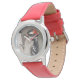 Añade un toque de personalidad a tu muñeca con un reloj de vida silvestre de los walkswithnature™ Observe la colección Birdie™. Este macho Downy Woodpecker se anunció abiertamente con un repertorio característico de chips de chip-chip justo antes de aparecer en este árbol muerto. Se fue a picotear a su paso, olvidando el lente de la cámara solitaria entrenado en él y los muchos caminantes en el camino. Basado en la fotografía original de W.H. Sim. Todos Los Derechos Reservados. Ver más en zazzle.com/walkswithnature