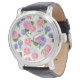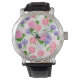 Patrón acuático con flores y teta azul pintado con acuarelas.