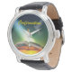 Una paloma está sobrevolando una biblia abierta con una cruz. Un regalo perfecto como reloj para alguien que será confirmado mientras celebra su día de confirmación.
