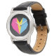 Celebra tu orgullo pansexual con este diseño vibrante que presenta la Bandera del Orgullo Pansexual en forma de corazón, ambientada con un atrevido fondo negro. Los colores brillantes de la bandera (rosa, amarillo y azul) resaltan maravillosamente, creando una fuerte y significativa declaración de amor e inclusión. Con una elegante correa clásica de cuero negro, este reloj es perfecto para mostrar tu orgullo de una manera elegante y sutil.