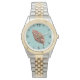 Este reloj muestra una fotografía de un pato femenino que muestra sus plumas marrones muy bien, en un fondo verde azulado. Ver mi tienda para más fotografía de pato. Obra de arte original de Lucky Wings Artwork