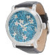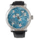 Reloj De Pulsera Patrón azul de hojas de palma