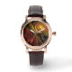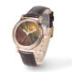 Flor Solar Floral Moderno Resumen Patrón de arte Perfecto Reloj de cuero marrón cuadrado