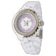 Elegante y lindo, este reloj monograma del patrón de cheurón púrpura y blanco es el accesorio perfecto para cualquier equipo.