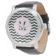 Reloj De Pulsera Patrón de cheurón negro y blanco
