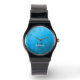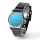 Patrón de malla geométrica azul Monograma Watch. Personaliza con tu personalizado inicial y nombre. Patrón de malla geométrica de gradiente cian azul.