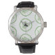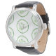 Patrón inoxidable con rodajas de pepino sobre fondo verde.